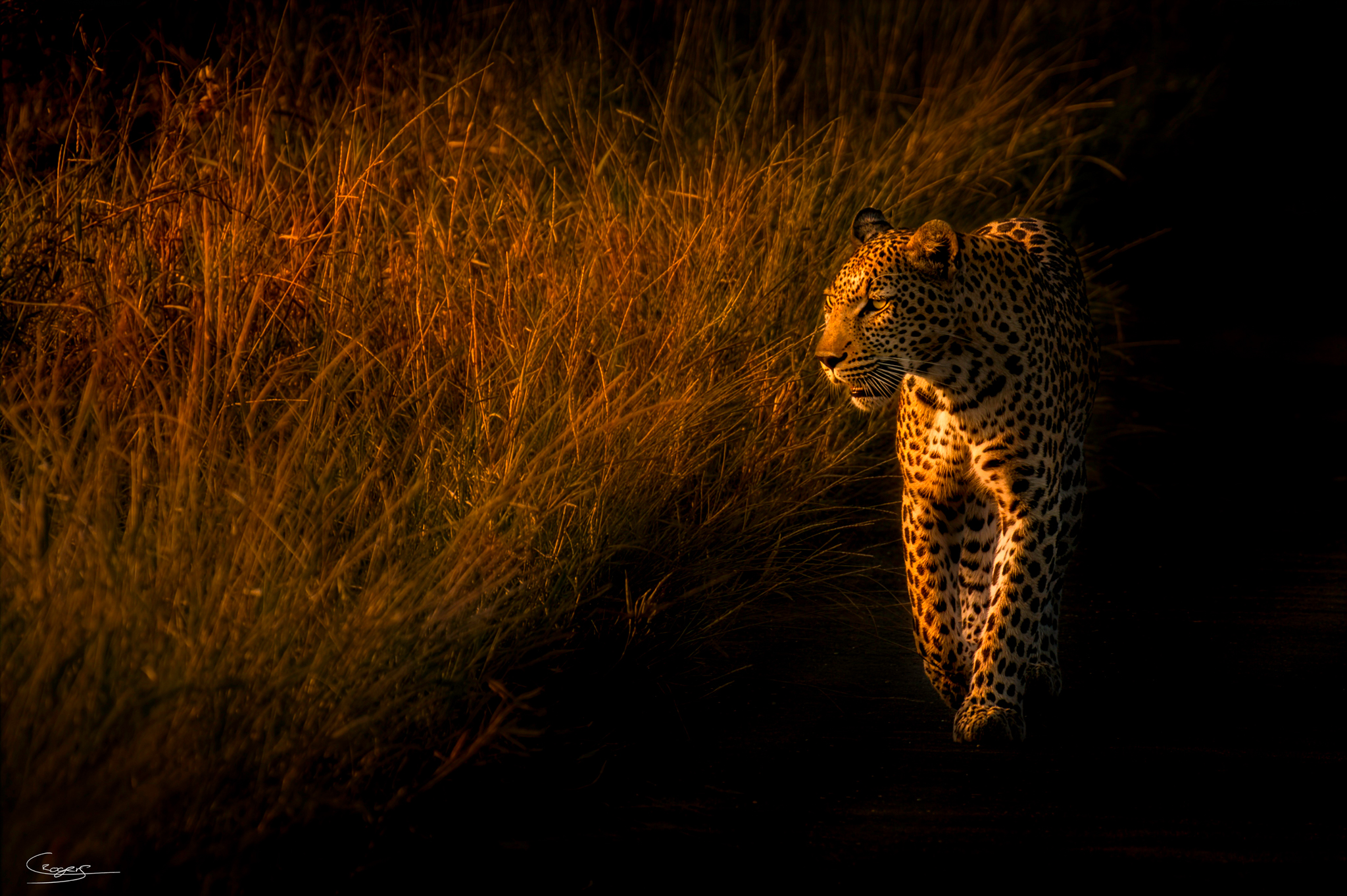 Description: As the sun rises over Kruger National Park, this Leopard remains camouflaged even though it remains out in the open.